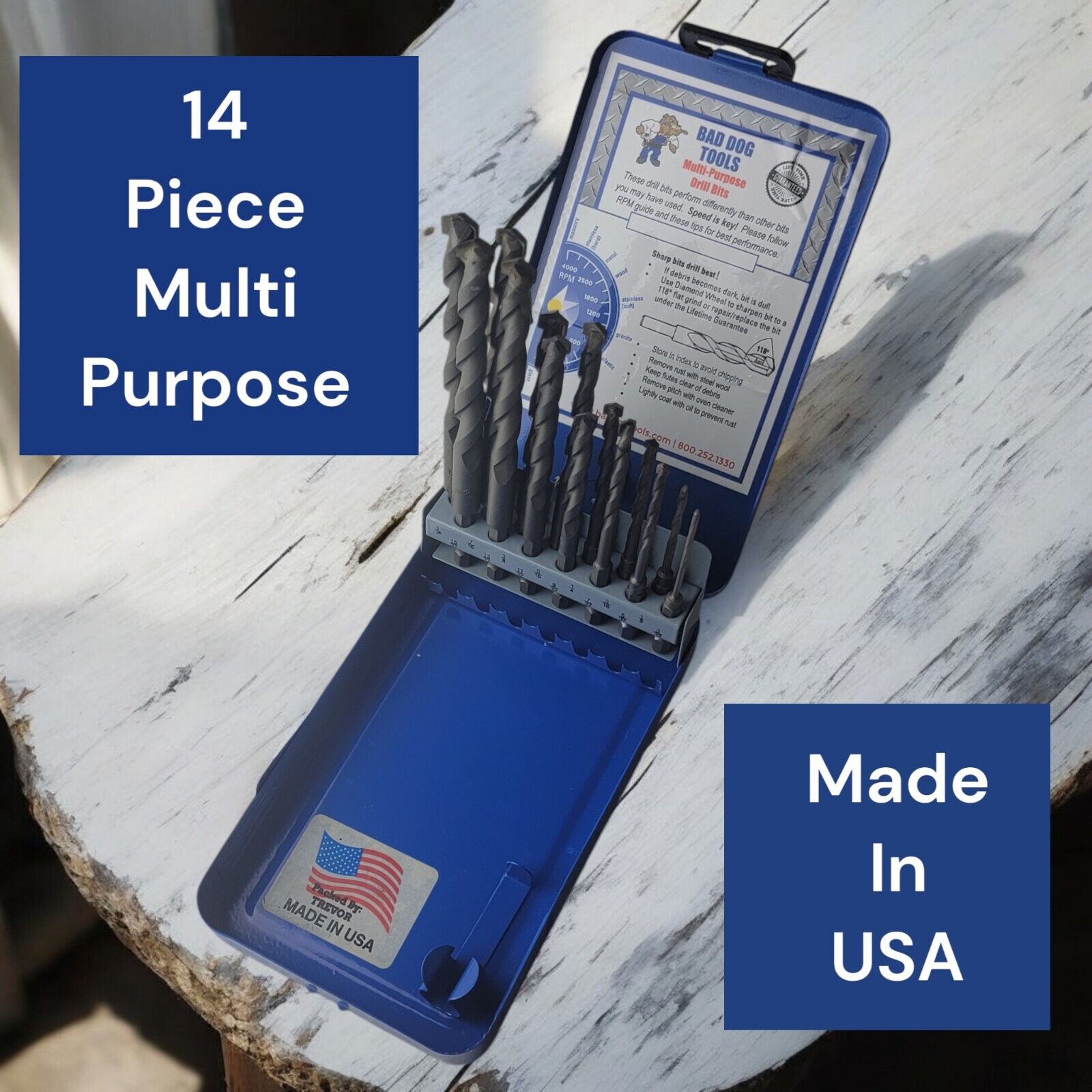 14 Piece Bad Dog Tools ~ All-Purpose for Metal, Wood & Plastic Drill Bit Set USA