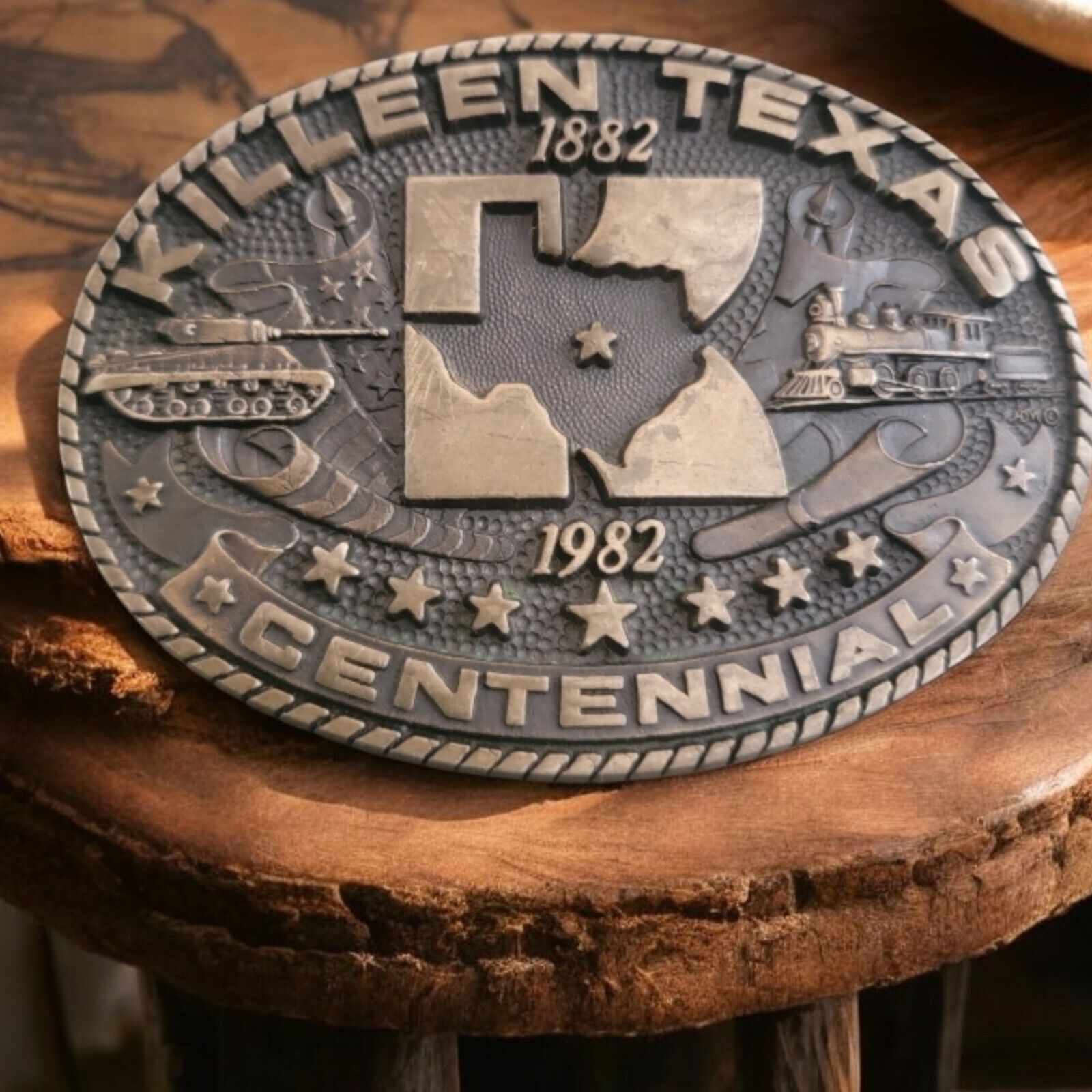 1982 Vintage Killeen, Texas Centennial Solid Brass Belt Buckle H.T.S.