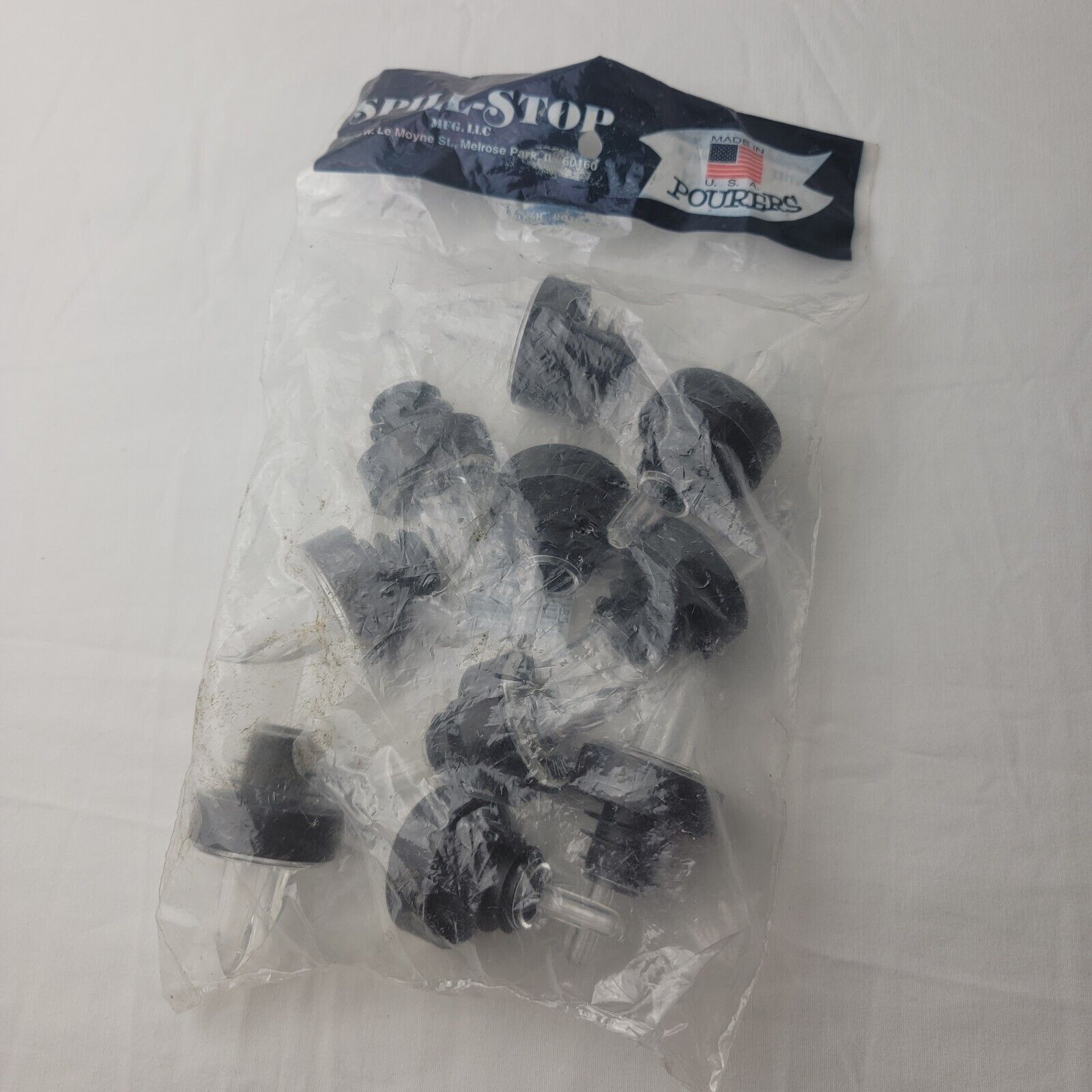 One Dozen Spill-Stop 361-00 Clear Plastic Pourers with Black Collar ~ NIP