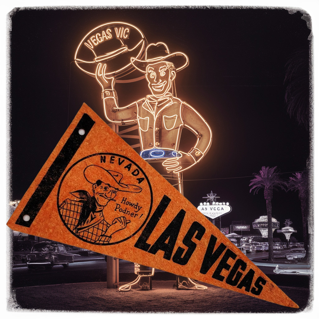 Vintage Las Vegas Nevada “Howdy Podner Vegas Vic” 1960’s Souvenir Pennant Banner