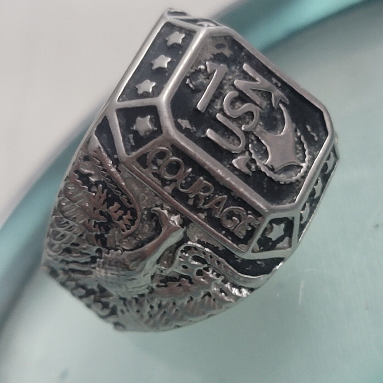 Vintage TK316 Silver Stainless Steel US Navy Military Size 11-3/4 Men's Ring