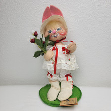 Vtg 12″ Annalee Doll Bunny Rabbit Strawberry Dress Bouquet #0660 Easter Bunny
